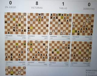 Unas partidas simultáneas conmigo con el resultado de 8 Victorias y unas tablas contra David. Y aparte unas rápidas internacionales con 29 participantes de varios países incluidos Rusia, Estados Unidos, Rumanía, Portugal, Francia e Israel !!